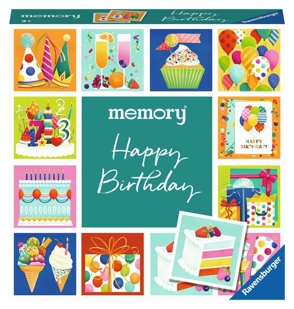 Chcete vyzkoušet novou a presto tak důvěrně známou hru? Pak vyzkoušejte hru Memory od Ravensburgeru. Memory, to je pexeso v atraktivním provedení. Obrázky jsou natištěny na tvrdém kartonu, který vydrží v perfektním stavu nespočet her. Díky balení v praktické krabičce už nikdy žádné kartičky neztratíte. Při hraní pexesa si skvěle vytrénujete paměť a koncentraci. Světově proslulá klasická hra, které těší dospělé i děti od 3 let již desítky let. Neuvěřitelně jednoduchá pravidla hry dělají z pexesa dokonalou rodinnou hru, kde malí často vyhrávají proti starším díky jejich schopnosti zapamatovat si jednotlivé obrázky. Balení obsahuje 24 dvojic obrázků s motivy z kolekce "Vše nejlepší k narozeninám". Najděte dva stejné dorty, balonky a další obrázky spojené s tou nejlepší narozeninovou oslavou.