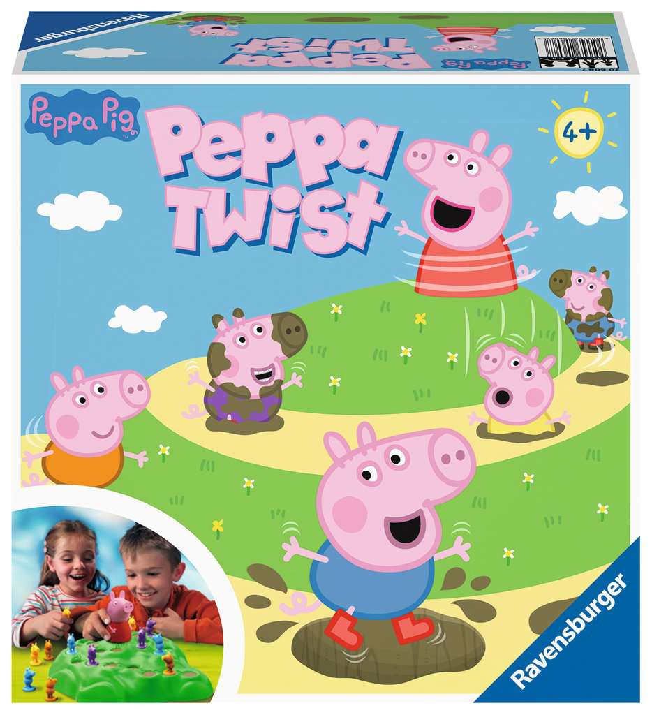 Peppa Twist – zábavná 3D hra s Prasátkem Peppou a přáteli pro děti od 4 let. Hráči se snaží se svými úžasnými postavičkami George co nejrychleji dostat k Peppě, která čeká jako 3D figurka na vrcholu travnatého kopce. Ve hře jsou samozřejmě i kamarádi Prasátka Peppy, známí ze stejnojmenného seriálu. Pomocí akčních karet se hráči dostávají krok za krokem do kopce. Ale pozor: Ne všechny blátivé kaluže na cestě jsou bezpečné! Pokud otočíte prasátkem Peppou na vrcholu kopce, najednou se tam, kde byla blátivá kaluž, objeví díra a George v ní zmizí. Hráči potřebují hodně štěstí, trochu odvahy a taktiky, aby dostali jednu ze svých postav George k Peppě jako první a vyhráli hru.