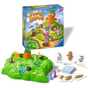 Ligesom i det klassiske spil kan 2 til 4 spillere fra 4 år og opefter også i fødselsdagsudgaven køre om kap med deres farverige kaniner. Målet er guleroden på toppen af bakken. Men vejen dertil er fuld af overraskelser! Ud over de huller, der åbner sig, er der tre andre forhindringer, der gør det endnu mere spændende: en muldvarp, en vindebro og en port. Hurtigt, kaniner, lad jer ikke stoppe af noget og løb videre. Hvem når guleroden først? Funny Bunny er blevet nomineret og tildelt flere priser siden 2001. 20 år med sjov, spil og glæde. Tillykke med fødselsdagen, Funny Bunny!