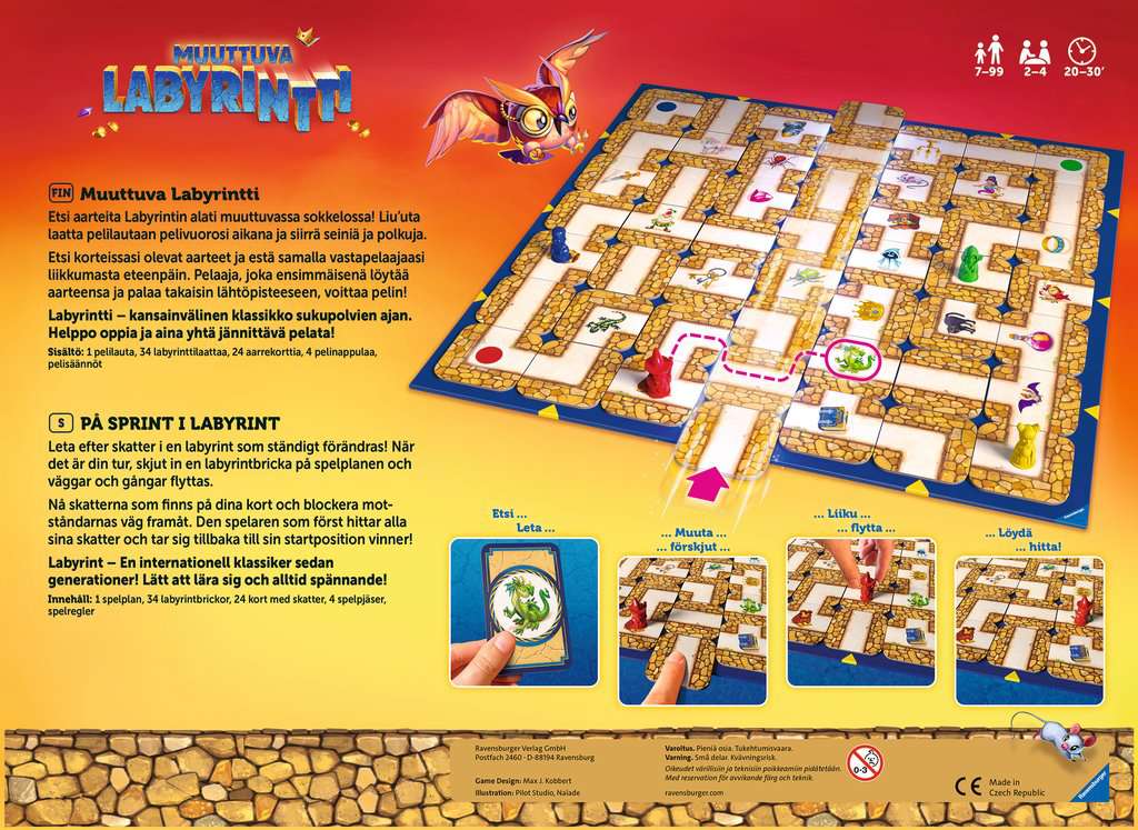 Työnnä käytäviä, siirrä pelinappuloita, etsi aarteita. Toisinaan saatat törmätä lohikäärmeeseen tai jopa kummituksiin! Tehtäväsi on etsiä aarteita. Kanssapelaajiesi tehtävä on vaikeuttaa sitä parhaan kykynsä mukaan. Helppo ja hauska pelata ja aina yhtä jännittävää!